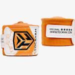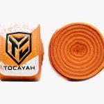 The Tocayah Boxing Orange Hand Wraps : The Tocayah Bandage is made of 40% slightly stretchy cotton soft and 60% Nylon, with a Velcro closure. The bandage is 6 meters long and has a thumb loop for easy use. Our hand wraps are durable and can be washed and reused as much as you want.